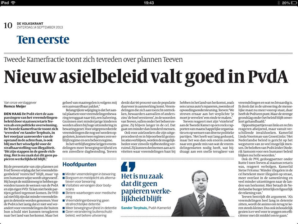 Berichtgeving VK over brief Teeven